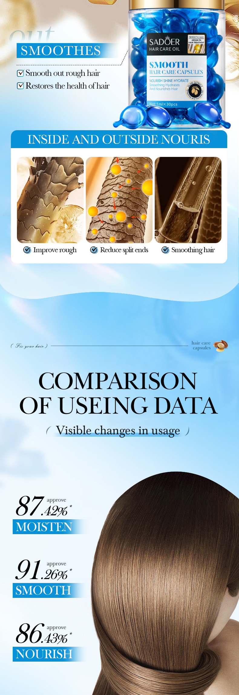 2. Long-lasting smoothing effect: the unique smoothing formula can form a protective layer on the hair external, effectively reduce static electricity, and make tangled and difficult-to-comb frizzy hair become silky smooth and easy to manage.